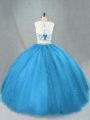 Top Selling Blue Sleeveless Tulle Zipper 15th Birthday Dress for Sweet 16 and Quinceanera