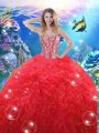 Top Selling Coral Red Quince Ball Gowns Military Ball and Sweet 16 and Quinceanera with Beading and Ruffles Sweetheart Sleeveless Lace Up