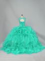 Top Selling Floor Length Lace Up 15 Quinceanera Dress Turquoise for Sweet 16 and Quinceanera with Beading and Ruffles