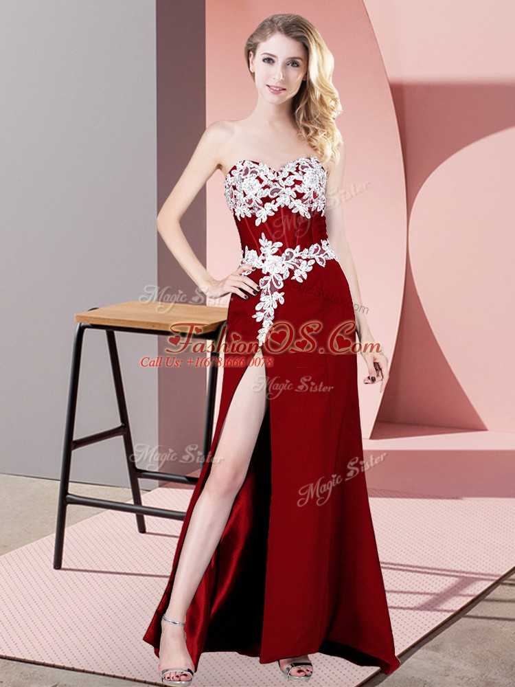 Top Selling Floor Length Zipper Prom Party Dress Red for Prom and Party and Military Ball with Lace and Appliques