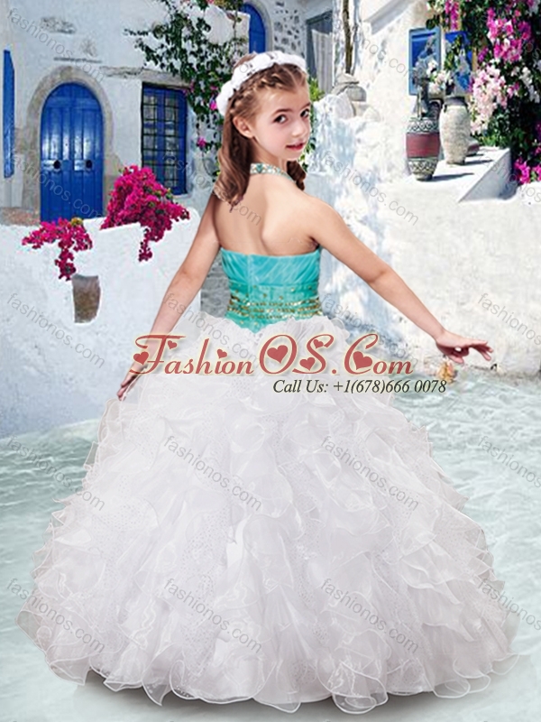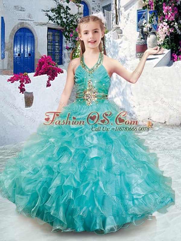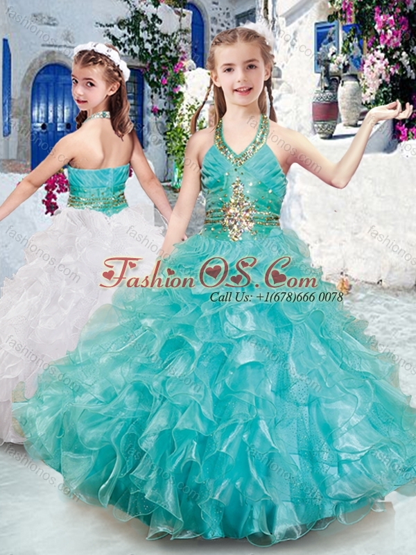 Top Selling Halter Top Little Girl Pageant Dresses with Beading and Ruffles