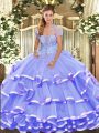 Home >  Quinceanera Dresses >  Puffy Quinceanera Dresses > Top Selling Lavender Ball Gowns Organza Strapless Sleeveless Appliques and Ruffled Layers Floor Length Lace Up Quinceanera Gowns