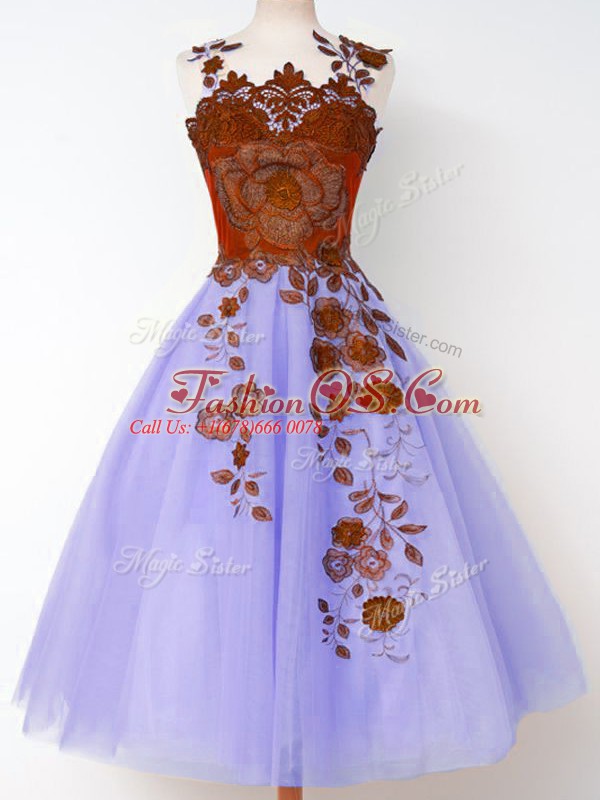 Top Selling Lavender Lace Up Quinceanera Dama Dress Appliques Sleeveless Knee Length