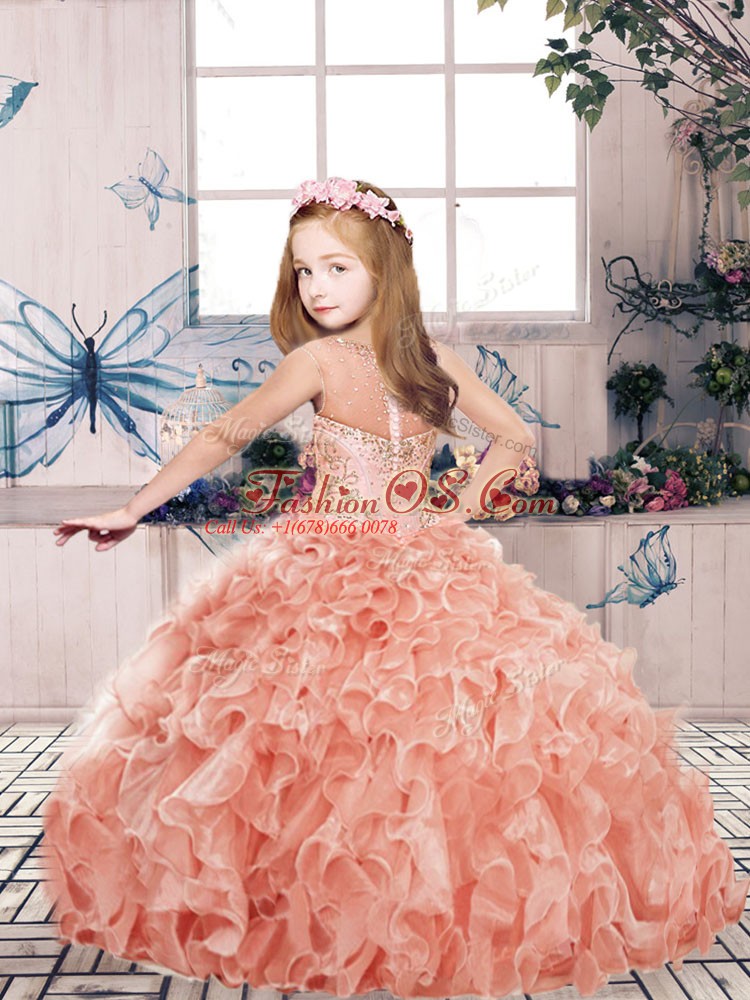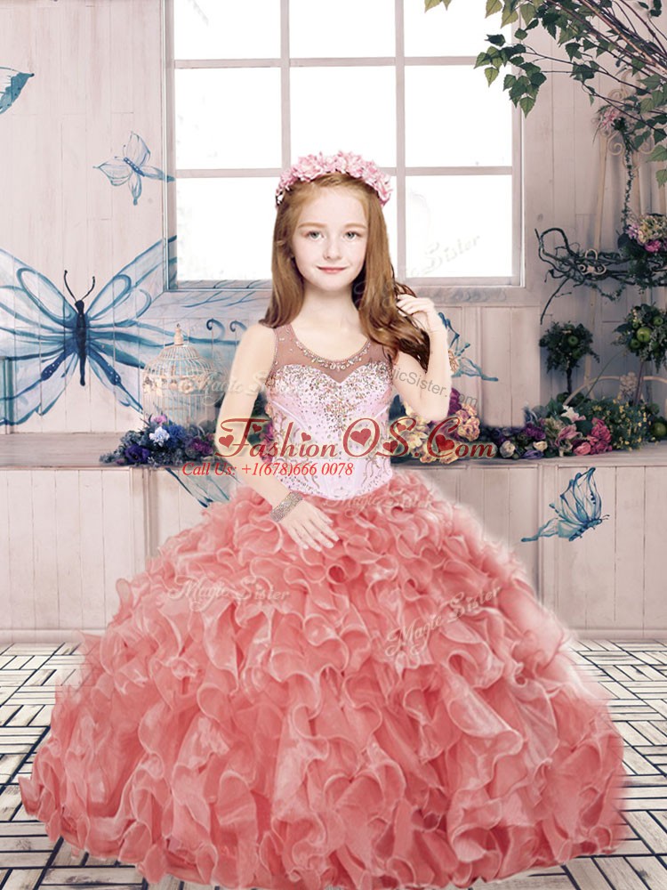 Top Selling Organza Scoop Sleeveless Zipper Beading and Ruffles Little Girl Pageant Gowns in Red