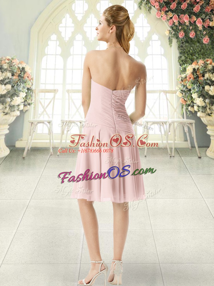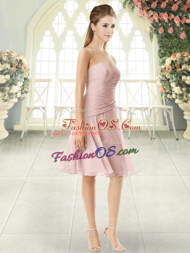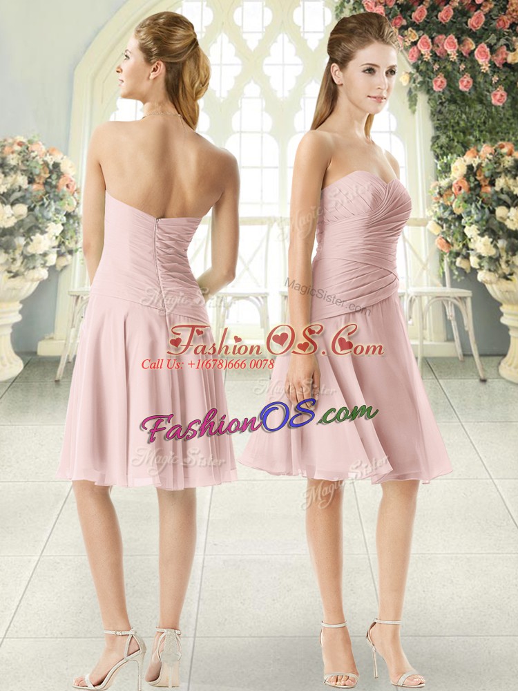 Top Selling Pink Chiffon Zipper Sweetheart Sleeveless Knee Length Ruching