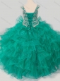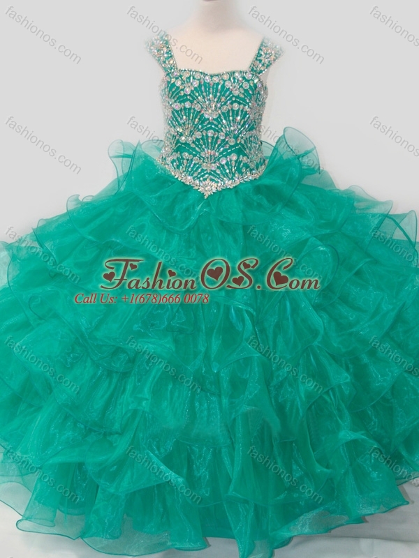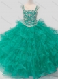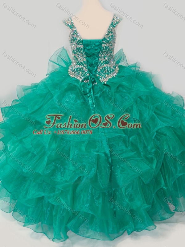 Top Selling Princess Straps Organza Turquoise Lace Up Mini Quinceanera Dress with Beading