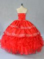 Top Selling Red Side Zipper Ball Gown Prom Dress Embroidery and Ruffles Sleeveless Floor Length