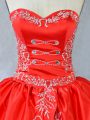 Home >  Quinceanera Dresses >  Fashionable Quinceanera Dresses > Top Selling Red Side Zipper Ball Gown Prom Dress Embroidery and Ruffles Sleeveless Floor Length