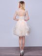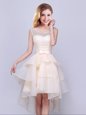 Top Selling Scoop Lace and Ruffles Wedding Party Dress Champagne Lace Up Sleeveless High Low