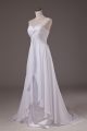 Top Selling Sleeveless Chiffon Sweep Train Lace Up Wedding Dress in White with Lace
