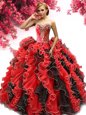 Home >  Quinceanera Dresses >  Sweet 16 Dresses > Top Selling Sleeveless Organza Floor Length Lace Up Quinceanera Gown in Red And Black for with Beading and Ruffles