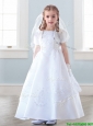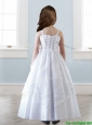 Top Selling Spaghetti Straps White Flower Girl Dress with Appliques