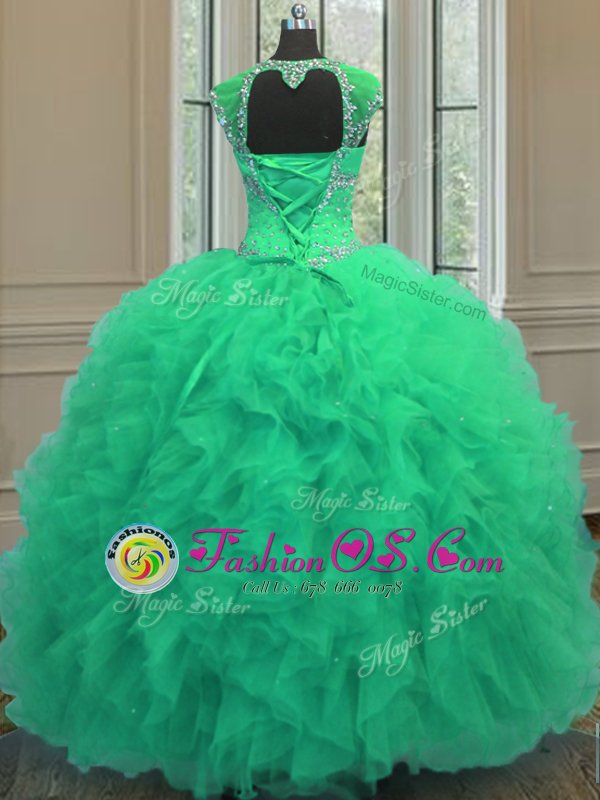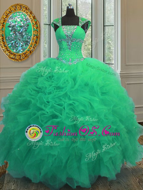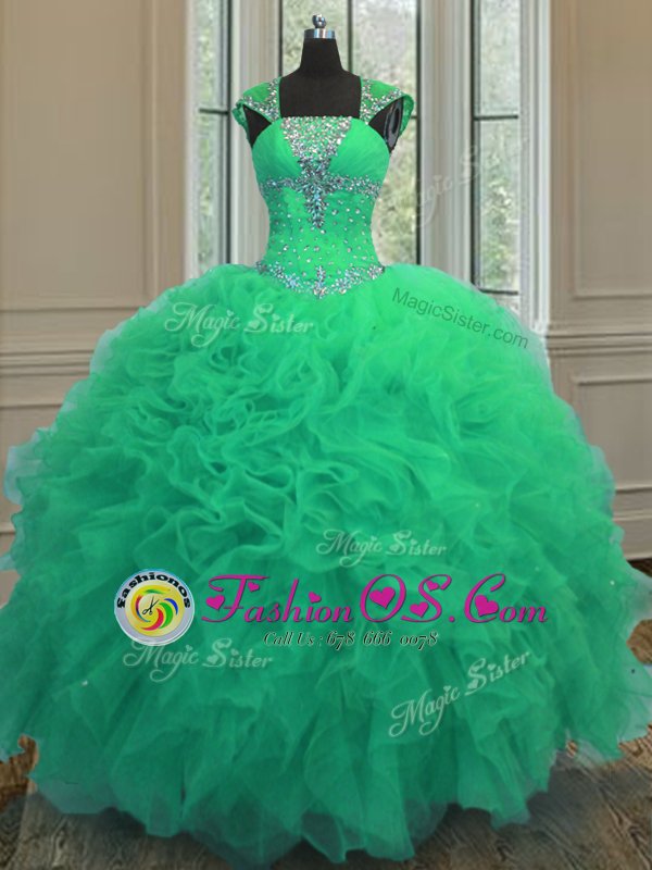 Top Selling Straps Cap Sleeves Lace Up Floor Length Beading and Ruffles and Sequins Vestidos de Quinceanera