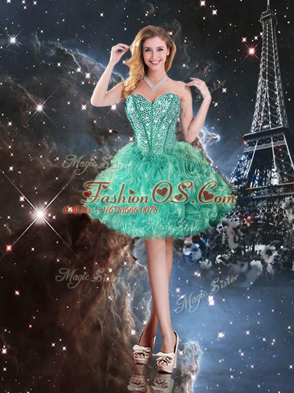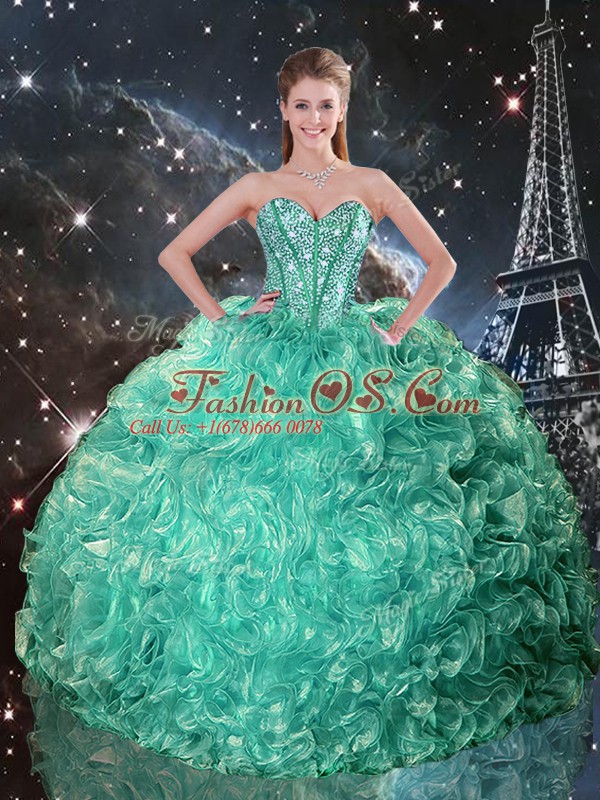 Top Selling Turquoise Three Pieces Beading and Ruffles Quinceanera Gowns Lace Up Organza Sleeveless Floor Length