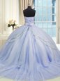 Top Selling With Train Zipper 15th Birthday Dress Lavender and In for Military Ball and Sweet 16 and Quinceanera with Beading and Appliques Brush Train