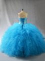 Traditional Baby Blue Sweetheart Neckline Beading and Ruffles Quinceanera Dresses Sleeveless Lace Up