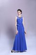 Traditional Blue Dress for Prom Prom and Party and For with Beading and Appliques Scoop Sleeveless Zipper