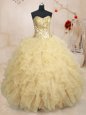 Traditional Champagne Sleeveless Floor Length Beading and Ruffles and Sequins Lace Up Sweet 16 Quinceanera Dress