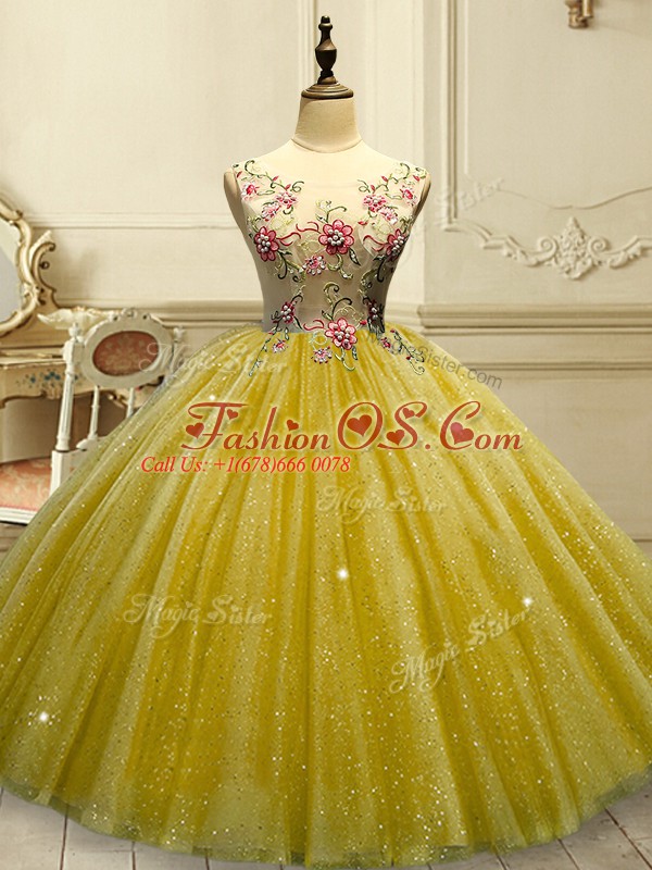 Traditional Floor Length Ball Gowns Sleeveless Gold Quinceanera Gown Lace Up