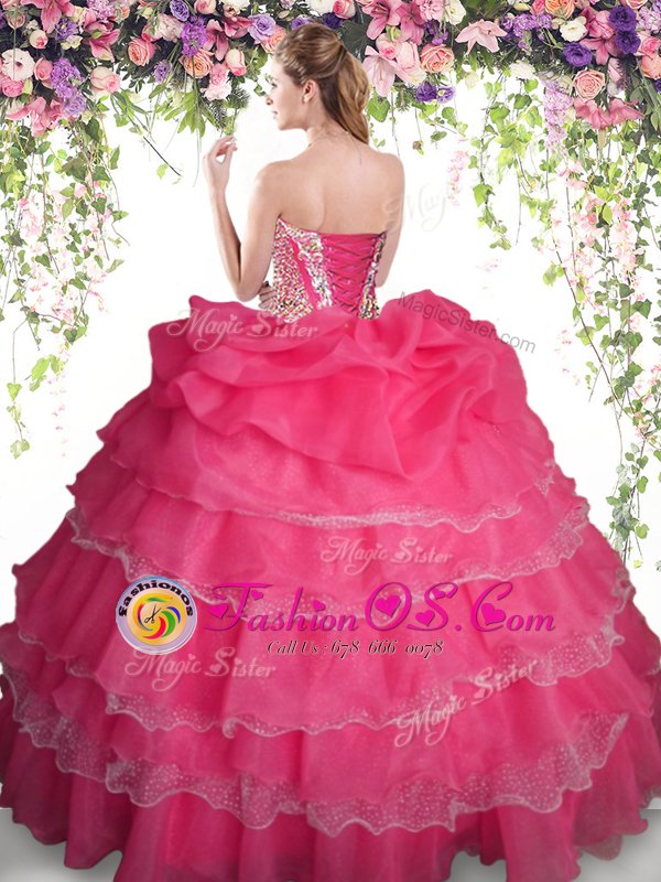 Traditional Floor Length Lace Up Quinceanera Gown Purple and In for Military Ball and Sweet 16 and Quinceanera with Beading and Ruffled Layers and Pick Ups