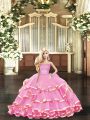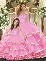 Traditional Floor Length Rose Pink Quinceanera Gown Organza Sleeveless Ruffled Layers