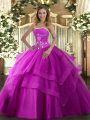 Traditional Fuchsia Ball Gowns Beading and Ruffled Layers Quinceanera Dress Lace Up Tulle Sleeveless Floor Length
