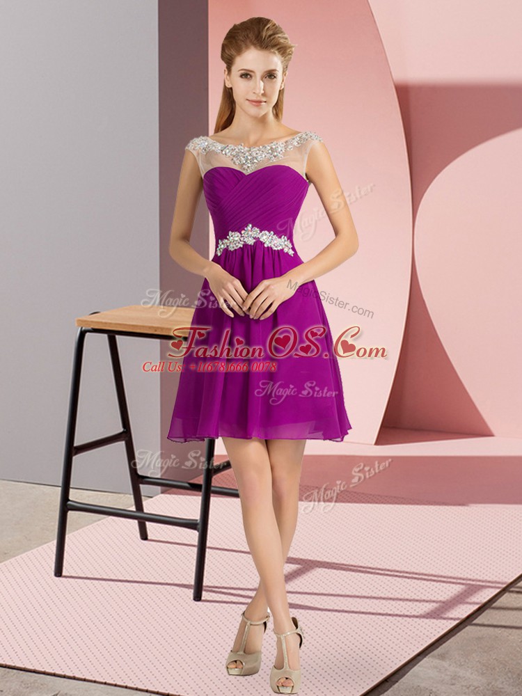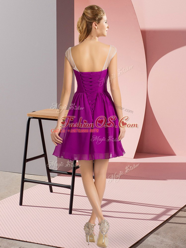 Traditional Fuchsia Evening Dress Prom and Party with Beading Scoop Cap Sleeves Lace Up