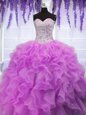 Traditional Fuchsia Organza Lace Up Sweetheart Sleeveless Floor Length Quinceanera Gown Ruffles