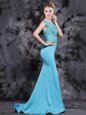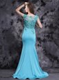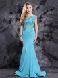 Home >  Prom Dresses >  Beautiful Prom Dresses > Traditional Mermaid Scoop Cap Sleeves Brush Train Appliques Zipper