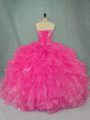 Home >  Quinceanera Dresses >  Beautiful Quinceanera Dresses > Traditional Organza Strapless Sleeveless Lace Up Beading and Ruffles Quinceanera Gowns in Hot Pink