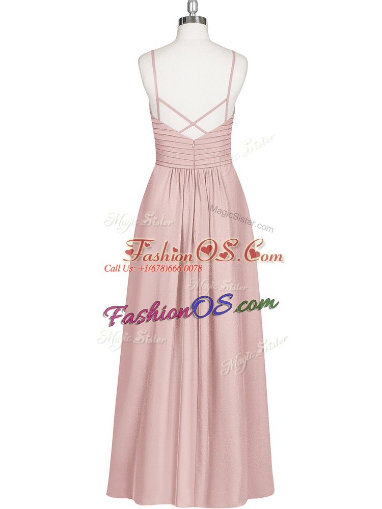 Traditional Pink Sleeveless Chiffon Criss Cross Evening Dress for Prom and Party