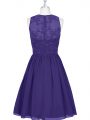 Traditional Purple Scoop Neckline Lace Prom Evening Gown Sleeveless Zipper