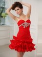 Home >  Special Occasion Dresses >  Cocktail Dresses > Traditional Ruffled Red Sleeveless Chiffon Lace Up Cocktail Dresses for Prom and Party