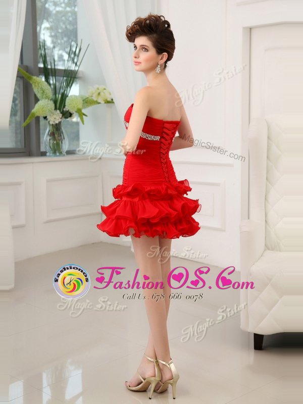 Traditional Ruffled Red Sleeveless Chiffon Lace Up Cocktail Dresses for Prom and Party