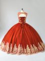 Traditional Scoop Sleeveless Lace Up Ball Gown Prom Dress Rust Red Tulle