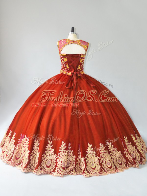 Home >  Quinceanera Dresses >  Quinceanera Dresses 2019 > Traditional Scoop Sleeveless Lace Up Ball Gown Prom Dress Rust Red Tulle