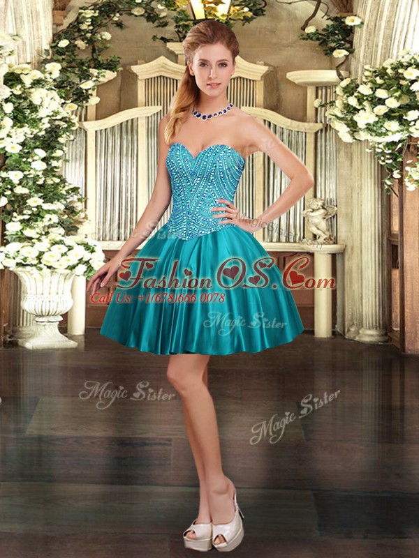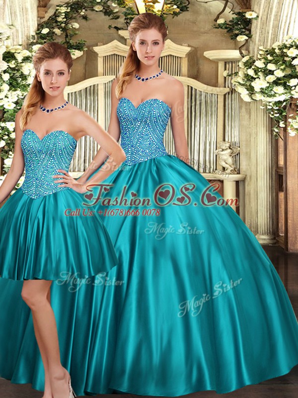 Traditional Sleeveless Floor Length Beading Lace Up Quinceanera Gown with Teal