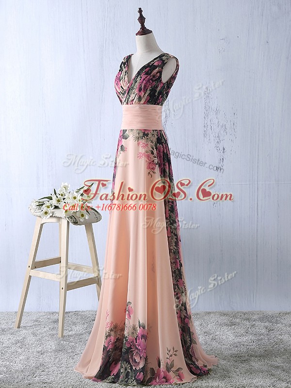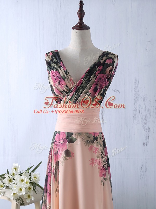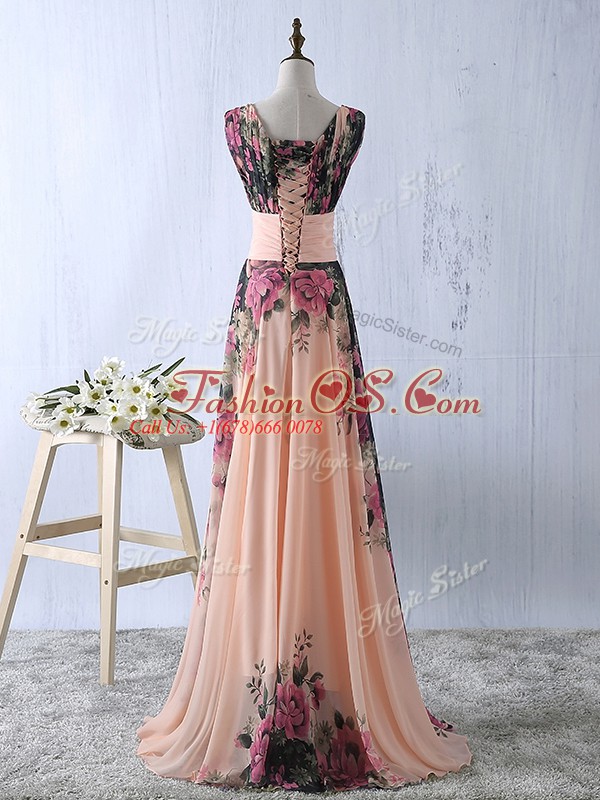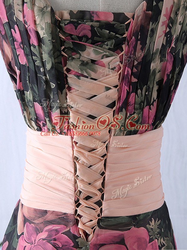 Traditional Sleeveless Lace Up Floor Length Ruching Prom Gown