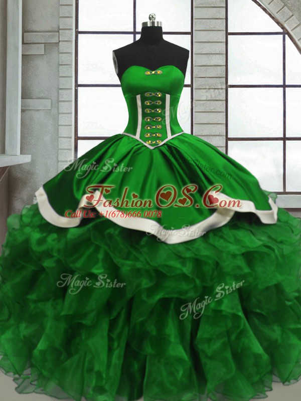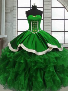 Traditional Sweetheart Sleeveless Organza Quinceanera Gown Beading and Ruffles Lace Up