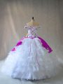 Traditional White And Purple Ball Gowns Organza Off The Shoulder Sleeveless Embroidery and Ruffles Floor Length Lace Up Sweet 16 Quinceanera Dress