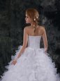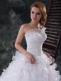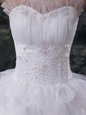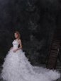 Traditional White Scoop Lace Up Beading and Ruffles Bridal Gown Chapel Train Sleeveless