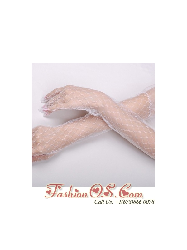 Home >  Accessories >  Gloves > Transparent Voile Fingertips Opera Length Bridal Gloves