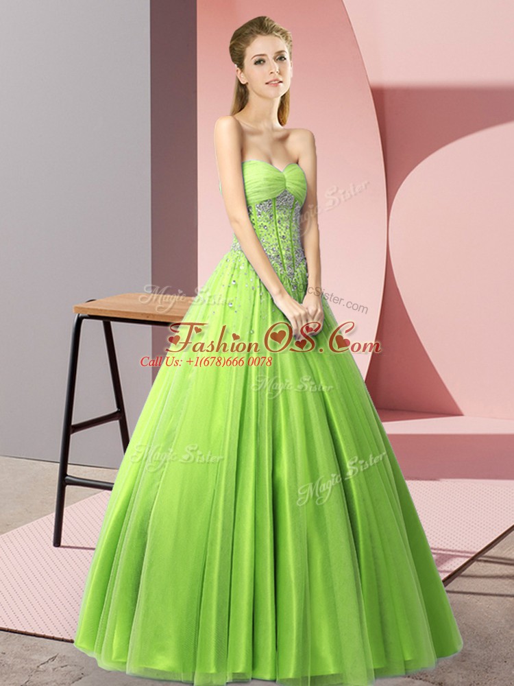 Trendy A-line Sweetheart Sleeveless Tulle Floor Length Lace Up Beading Evening Dress