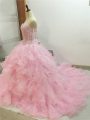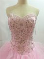 Trendy Baby Pink Sweetheart Neckline Beading and Ruffles Sweet 16 Quinceanera Dress Sleeveless Lace Up