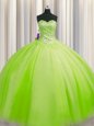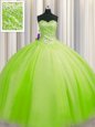 Trendy Big Puffy Tulle Lace Up Sweetheart Sleeveless Floor Length Quinceanera Gowns Beading