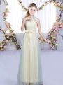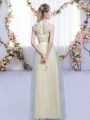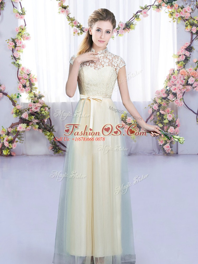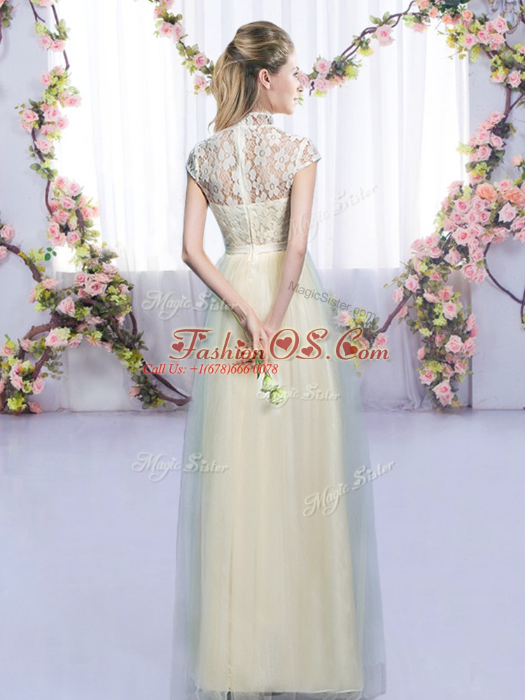 Trendy Champagne High-neck Zipper Lace and Bowknot Quinceanera Court of Honor Dress Cap Sleeves