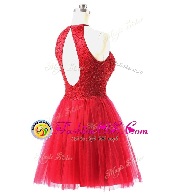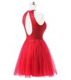 Trendy Coral Red Scoop Zipper Beading Dress for Prom Sleeveless
