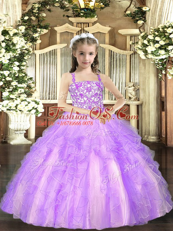 Trendy Floor Length Ball Gowns Sleeveless Lavender Child Pageant Dress Lace Up