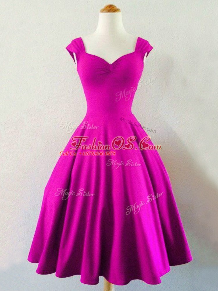 Trendy Fuchsia Sleeveless Ruching Knee Length Quinceanera Dama Dress