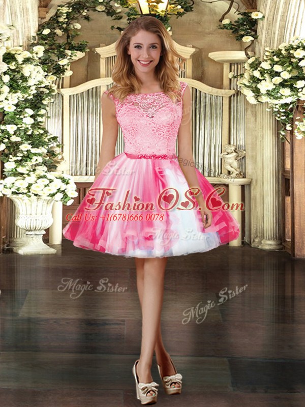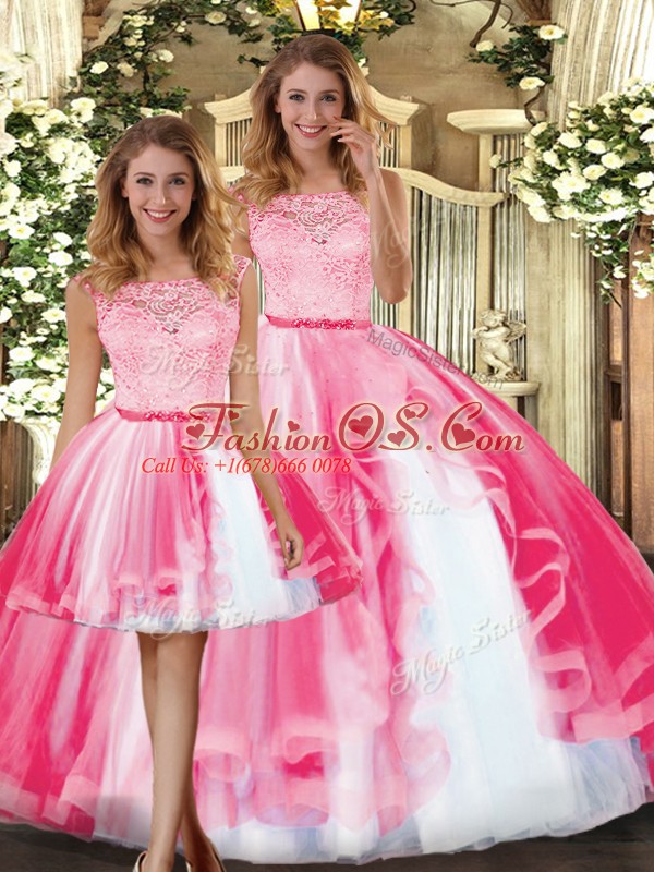 Trendy Hot Pink Sleeveless Tulle Clasp Handle Quince Ball Gowns for Military Ball and Sweet 16 and Quinceanera